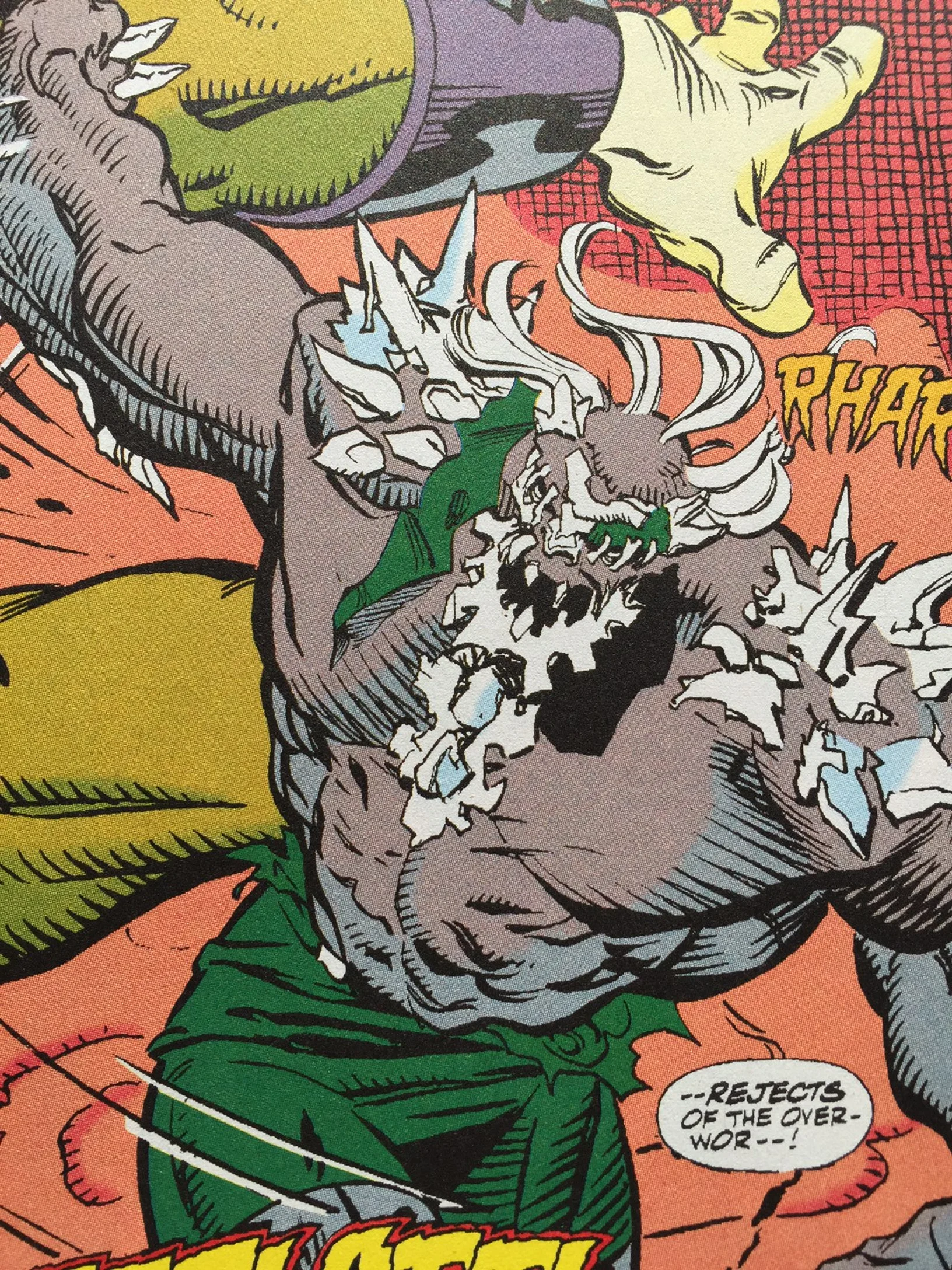 One of the things which the reader learns in the story is how Doomsday became this unstoppable killing machine. Eons ago there was an inhospitable planet: the atmosphere and temperatures could not sustain life save for these horrifying creatures that would devour anything in sight. So an alien scientist sent a baby out into this hellscape. The baby died. Then the scientist would send a robot out to collect the remains, clone the baby, and repeat. Each time, the clone would evolve a little bit more and survive a little bit longer: after years surviving the uninhabitable conditions and after years more killing all the hostile monsters on that planet. The creature--the result of this cycle--became Doomsday.