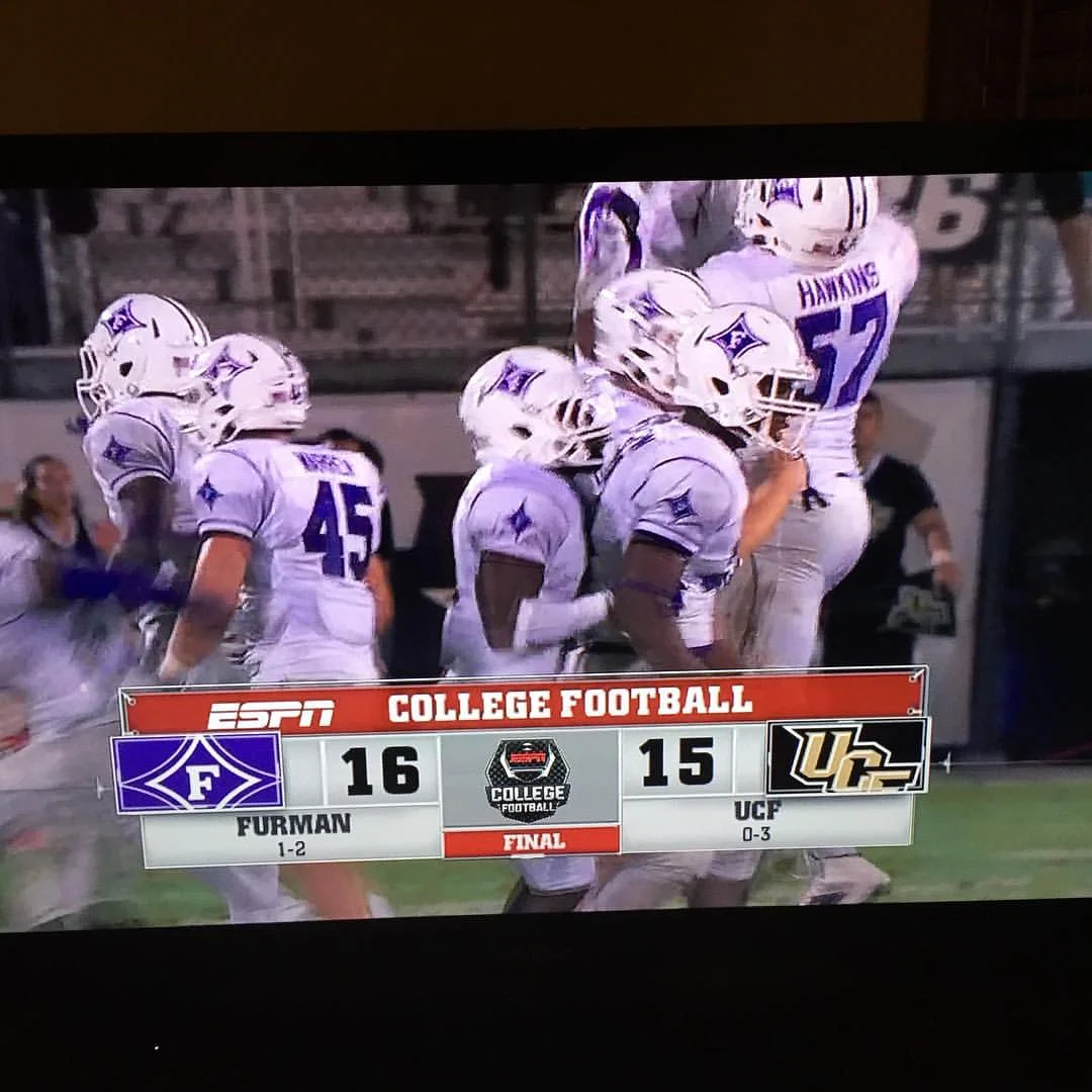 Are We Any Good? Yes! Granted, last week was one game and all the positive momentum drops dead if Furman loses its SoCon opener to VMI. Yet the UCF game provided much about which to be encouraged besides the final score. The defense looked incredible. The offense made some noise. They finally got some turnovers. Probably most impressively was the way, the Paladins seemed to get stronger down the stretch which was like the Bizarro World version of every game I have seen them play against a FBS team. Throw in the passion and energy the Paladins demonstrated (the way they poured onto the field after Hollingsworth hit the 55 yarder) and there was a lot to like.